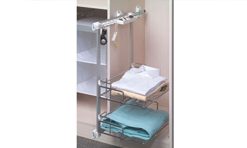 2-tier side mounted pull-out unit with part-extension wire basket for multi- purpose use.